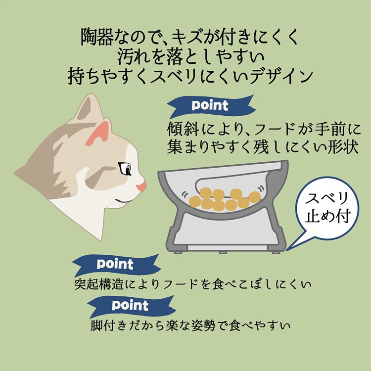 【アドメイト フードがこぼれにくい脚付き陶器食器 ドライフード向きの商品詳細】