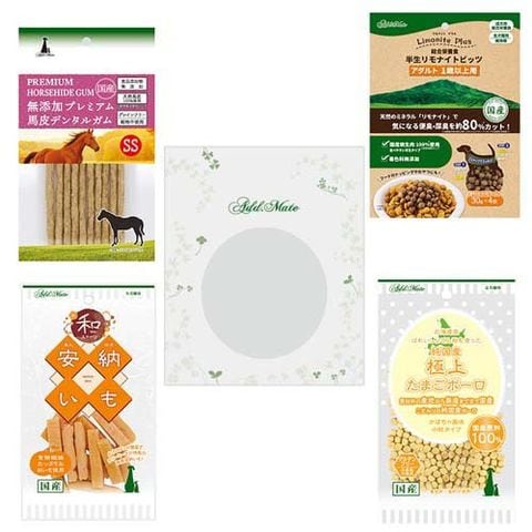 | ・馬皮デンタルガム SS 10本入 ・リモナイトプラス 総合栄養食 半生リモナイトビッツ アダルト 120g ・和スイーツ さつまいもトリーツ 安納いも 55g ・純国産 極上たまごボーロ かぼちゃ味 小粒タイプ 50g |