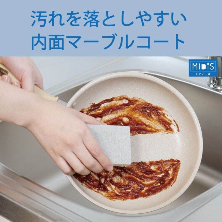 ●内面はこびりつきにくく、汚れを落としやすいマーブルコート。