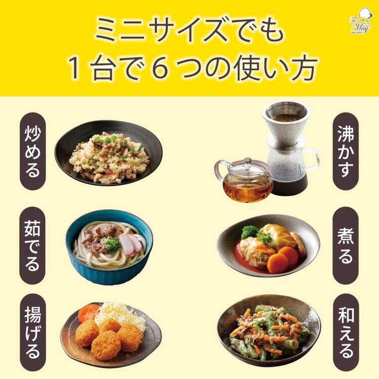●1台で「茹でる・沸かす・炒める・煮る・揚げる・和える」の6役使える。