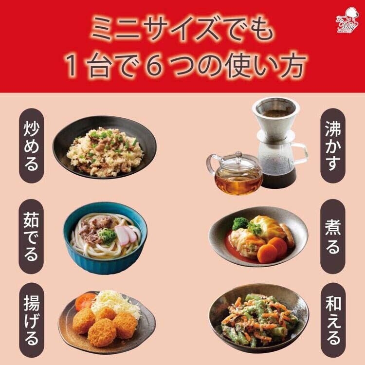 ●1台で「茹でる・沸かす・炒める・煮る・揚げる・和える」の6役使える。
