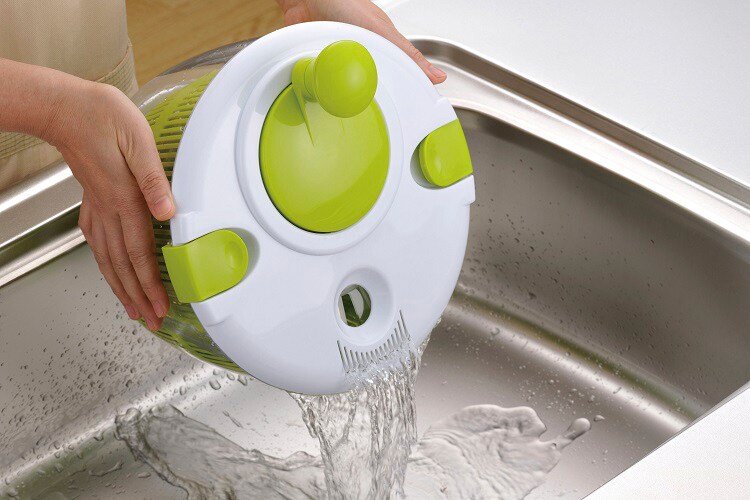 ●野菜の水分がしっかりきれる回転式水切り器です。毎日のサラダ作りも捗ります。