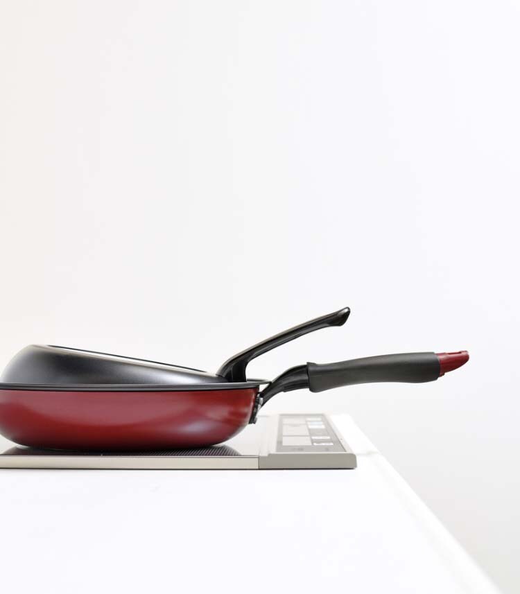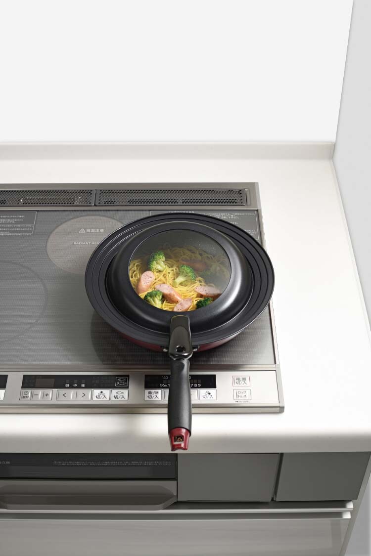 ●フライパンのハンドルに当たりにくいアップハンドル。