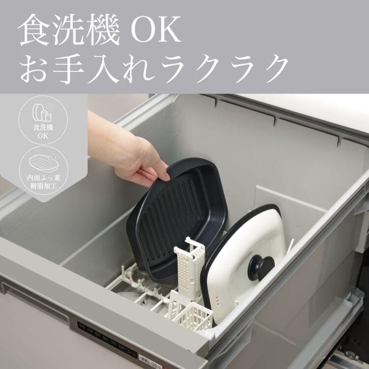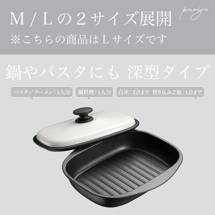| ・商品サイズ:約W240×D210×H100mm ・重量:約470g ・材質:本体:アルミめっき鋼板、内面:ふっ素樹脂加工、外面:焼付塗装、蓋:アルミめっき鋼板(内外面:焼付塗装)蓋パッキン・つまみ:シリコーンゴム |