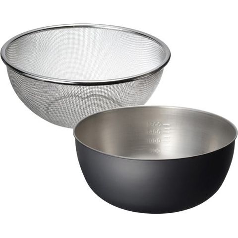 | 商品サイズ:約W220*D220*H100mm 重量:約490g 材質:ざる:18-8ステンレス、ボール:18-8ステンレス、外面:焼付塗装 |