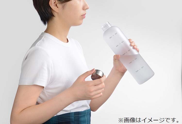 水を入れて、1時間で1メモリを目安にこまめに水分補給をすると1本飲み終わると約1L。