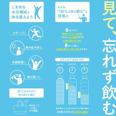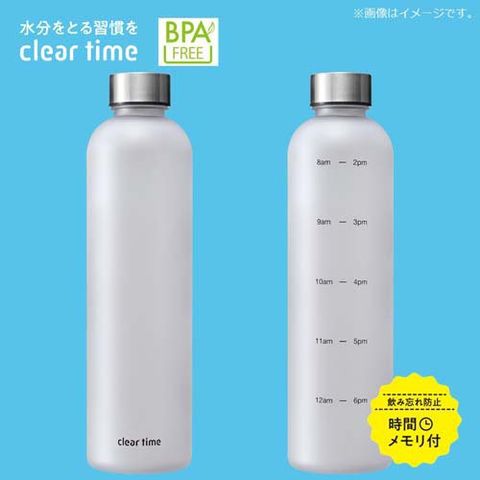 ●水分をとる習慣をつける、飲み忘れ防止時間メモリ付ボトルです。
