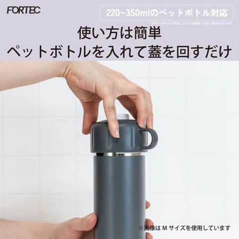 | 商品サイズ:約110×85×115mm 重量:約170g 材質:本体:ステンレス鋼(真空断熱構造)、外面:焼付塗装、カバー:ポリプロピレン 適合サイズ:220~350mlのペットボトル ※ペットボトルの形状によっては使用できない場合があります。 |