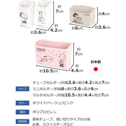| 本体サイズ:チューブホルダー/約3.6×4.2×7cm、ミニホルダー/約6×3.6×4cm、マルチホルダー/約10.5×4.4×7cm 素材:ポリプロピレン |