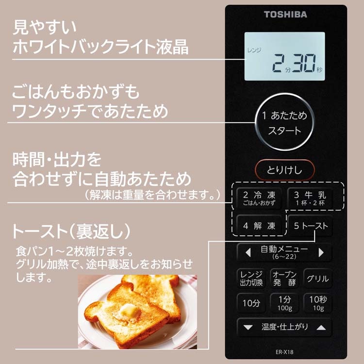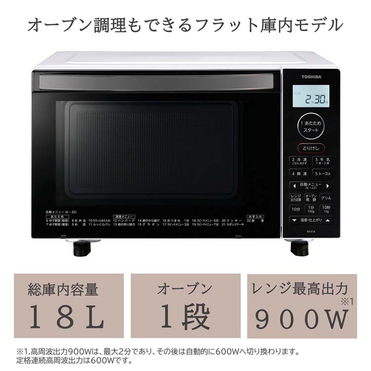 【東芝 オーブンレンジ 18L レンジ最高出力900W フラット庫内 ER-X18(W)の商品詳細】