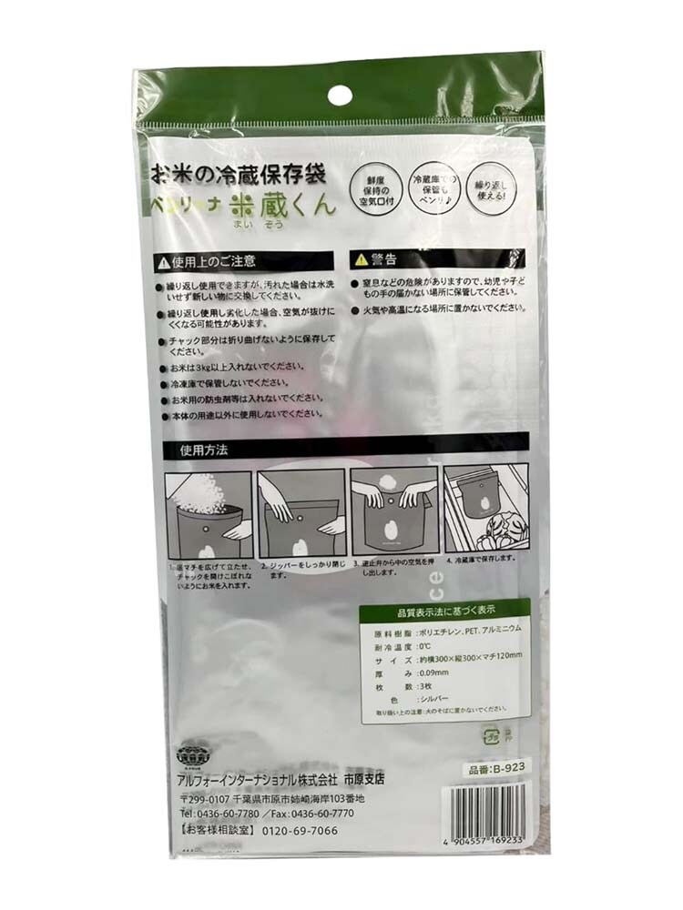 アルフォーインターナショナル お米の冷蔵保存袋 ベンリーナ 米蔵くん 3kg用 B-923 (3枚入)
