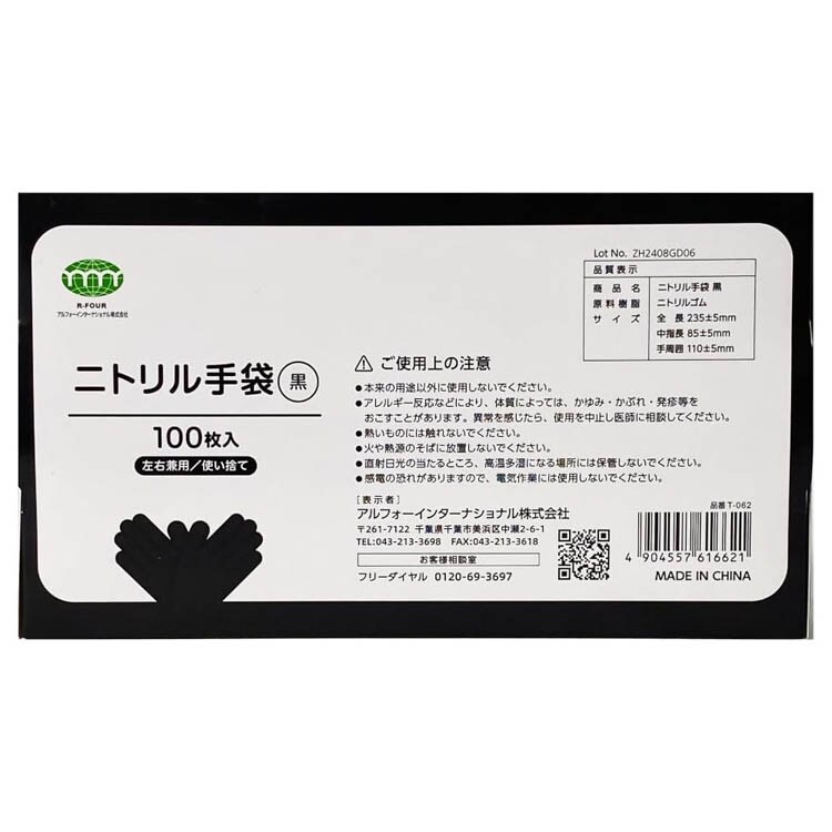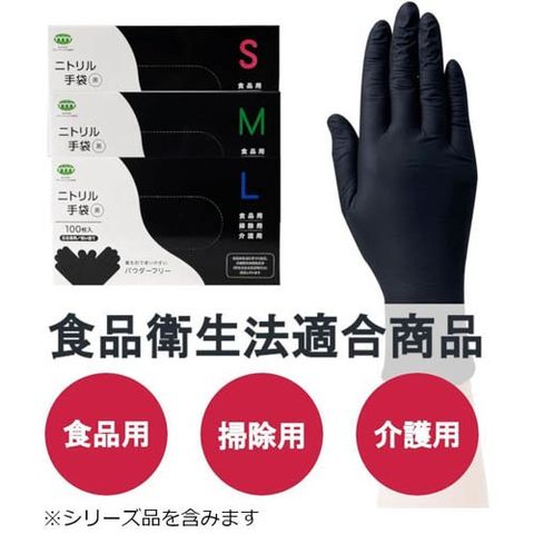 アルフォーインターナショナル ニトリル手袋 黒 L 粉なし 使い捨て T-062 (100枚)