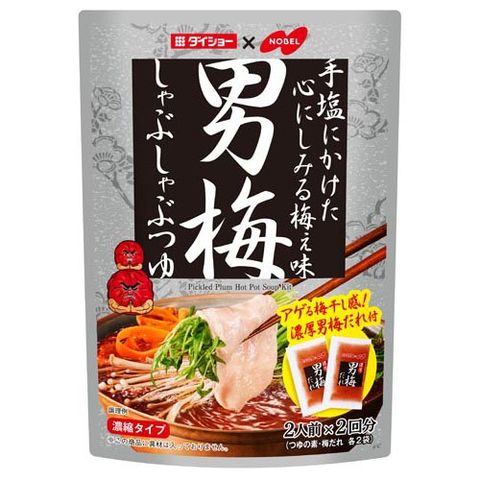 ●「男梅」の本格的で濃厚な梅干しの味わいを再現し、昆布・かつおの旨味を加えた「つゆの素」と、更に梅干し感をアゲる「濃厚男梅だれ」をセットにしたしゃぶしゃぶつゆです。