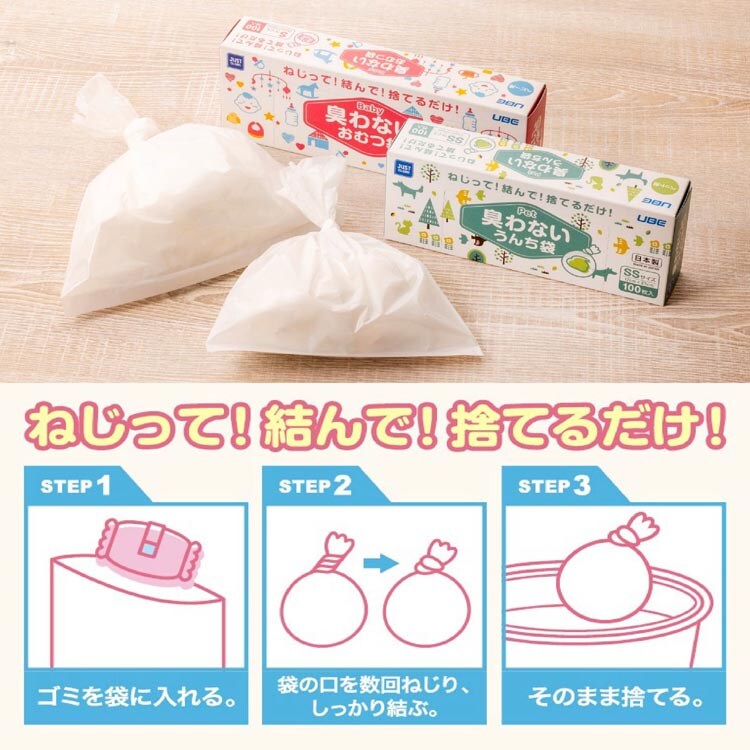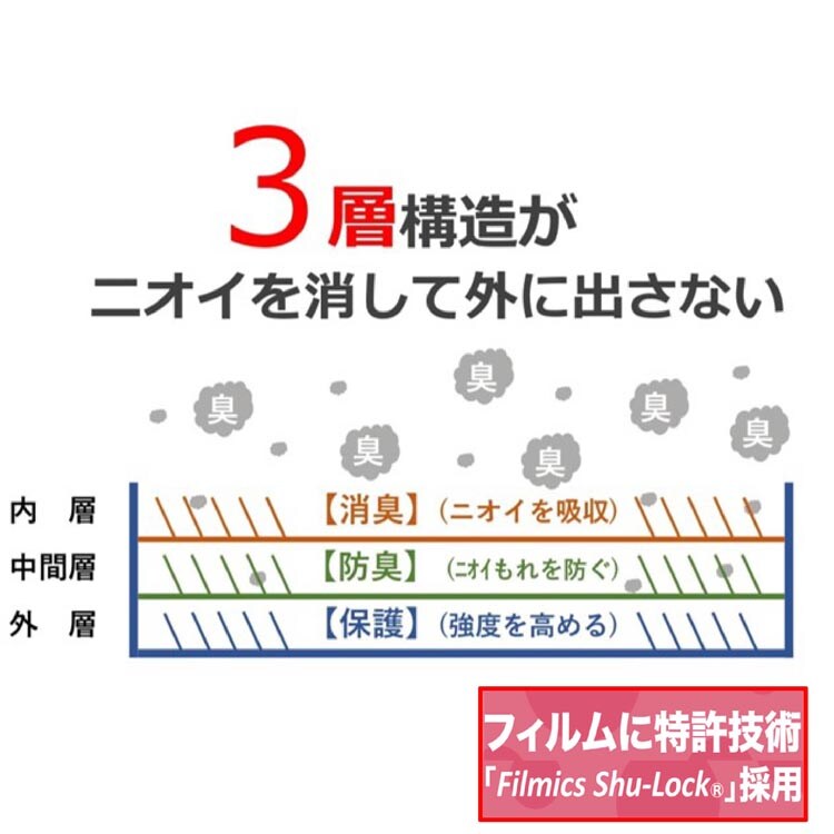 ・結目よりも上に汚れが付くと臭いが防げません。・つまりの原因になりますので、トイレや排水口には流さないでください。・突起物を入れると袋が破れます。また、袋を強く揉み、力を加えると袋が破れたり、中のものが漏れる原因となります。・窒息などの危険がありますので、子供の手の届かない所に保管してください。・本品は食べ物ではありません。乳幼児や認知症の方、及びペットの誤食を防ぐため、置き場所にご注意ください。・直射日光の当たる場所、火気や高温多湿になる場所に置かないでください。・ゴミに出すときは各自治体の区分に従ってください。・本来の用途以外には使用しないでください。