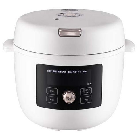 | 本体サイズ(約):31.9×32.4×25.7cm 質量(約):4.6kg 調理容量(約):2.5L 炊飯容量(約):白米:0.18~1.08L(1~6合)、玄米:0.18~0.72L(1~4合) 満水容量:4.0L 消費電力:760W 使用最高圧力(約):15kPa コードの長さ(約):1.1m 付属品:レシピブック(46レシピ掲載) |