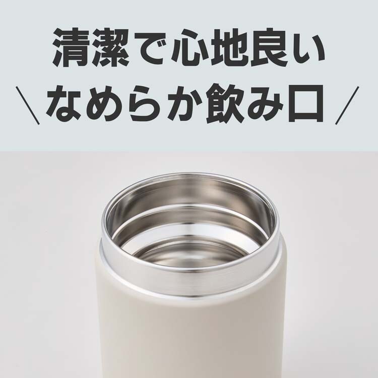 ●ステンレスの清潔さと飲み心地の良さを両立させた、なめらか飲み口。飲み口上部をカールさせることで、マグカップのような口あたりを再現しました。
