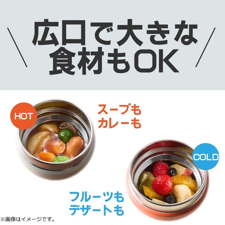 ●ステンレス製の真空二重構造により、高い保温・保冷効力を実現。スープや料理を温かい状態で、デザートを冷たい状態で持ち運ぶことができます