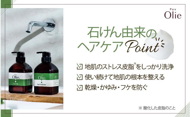 ●100%自然由来成分* オリーブ由来の石けんシャンプーです。地肌の酸化した皮脂をしっかり落とし、すっきりとした地肌へ。
