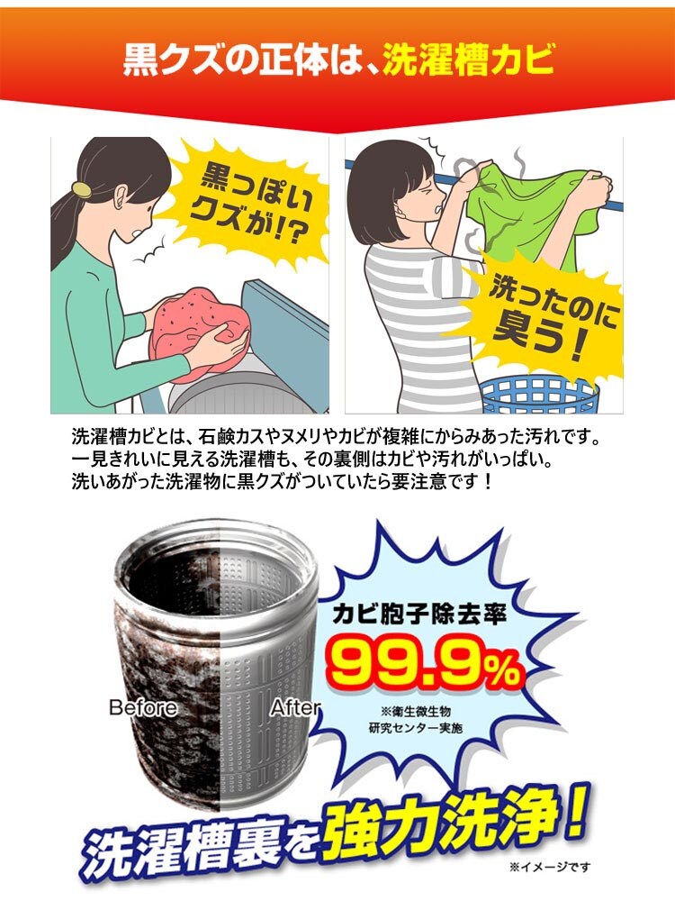 ●洗濯槽カビの奥まで浸透・強力分解、洗濯槽クリーナー。
