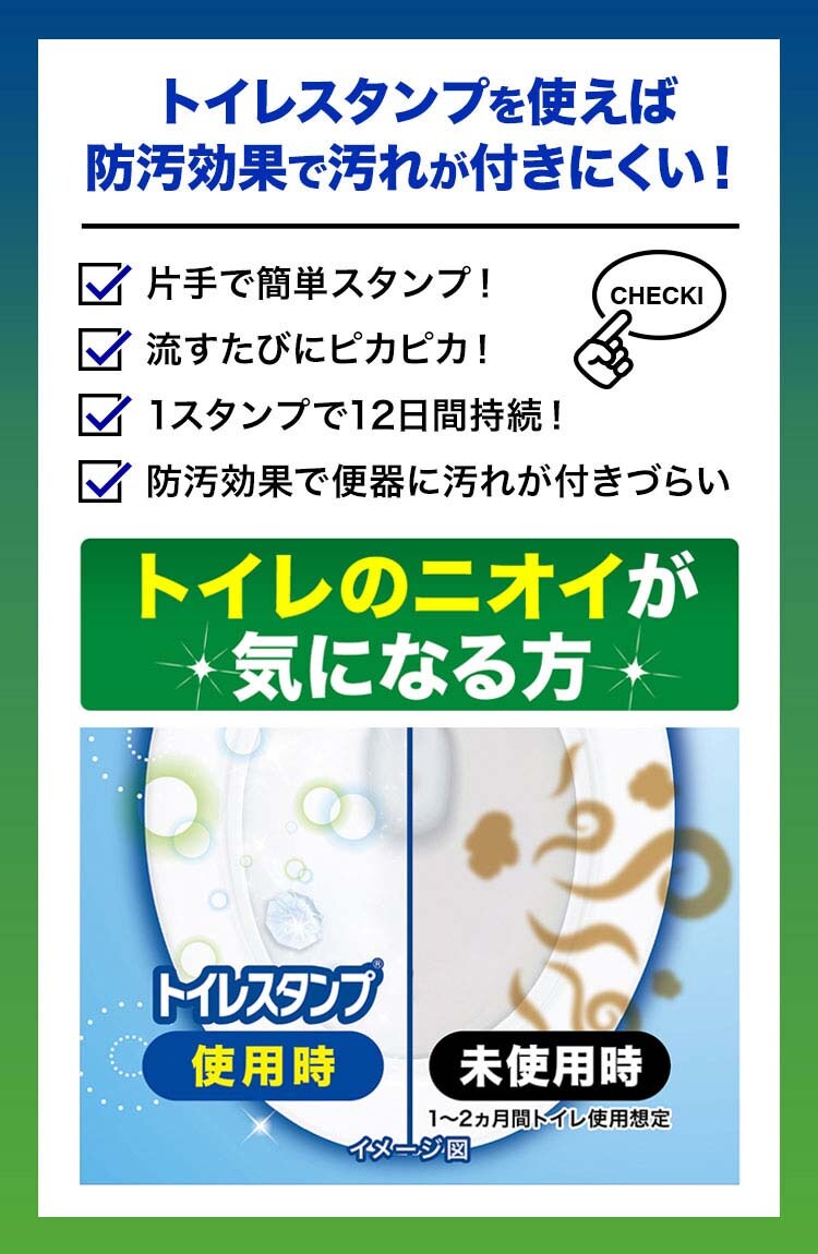 ●1回のスタンプでキレイが12日間続く!流すたびにしっかり洗浄してキレイが続くトイレのスタンプ(※1日約10回流した場合)