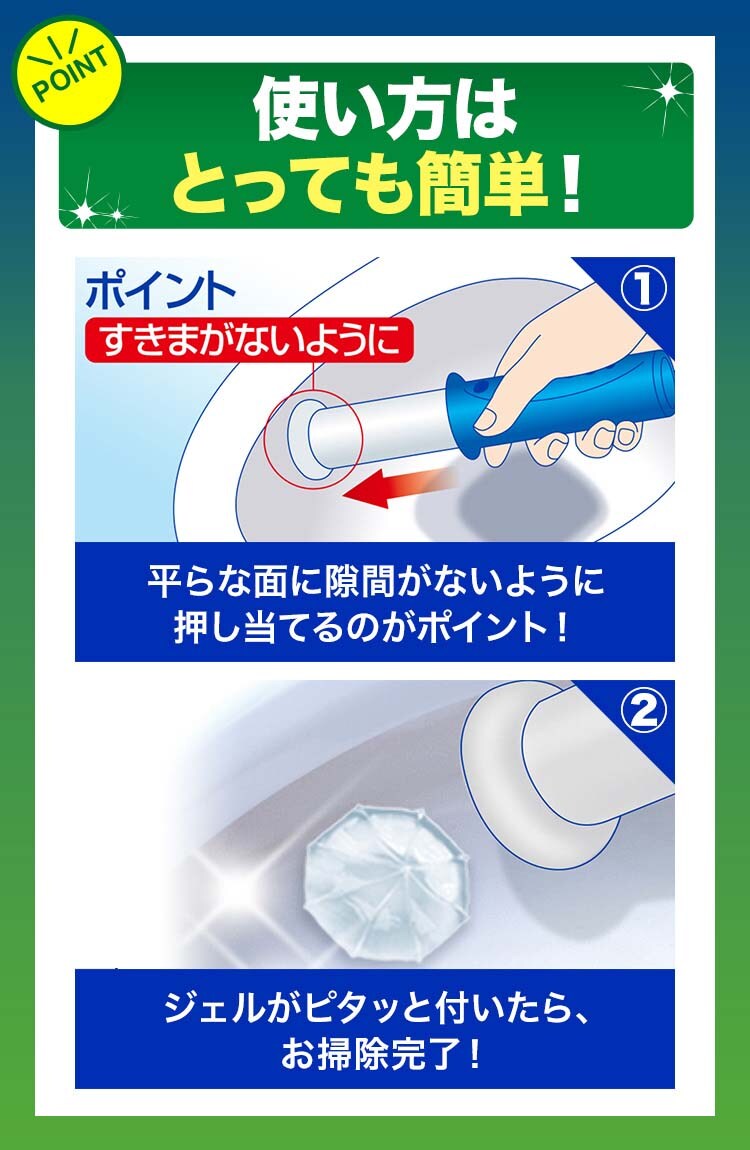 ・万が一、ジェルが便器の内側に落ちた場合は、そのままトイレの水を流す。