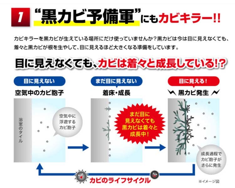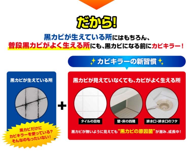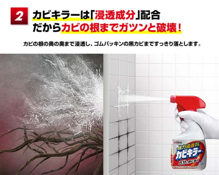 ●カビキラーの強力浸透成分配合で、カビの根の奥の奥まで強力浸透!