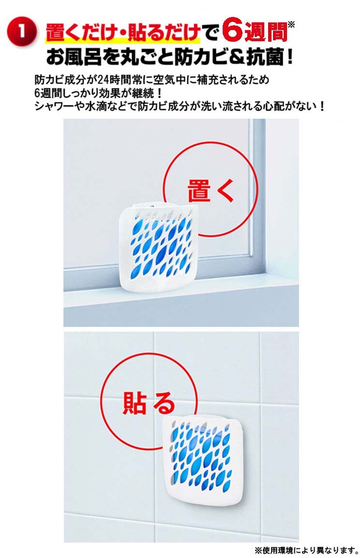 ●置くだけ・貼るだけでお風呂を丸ごと防カビ&抗菌ができる浴室用カビ防止剤です。