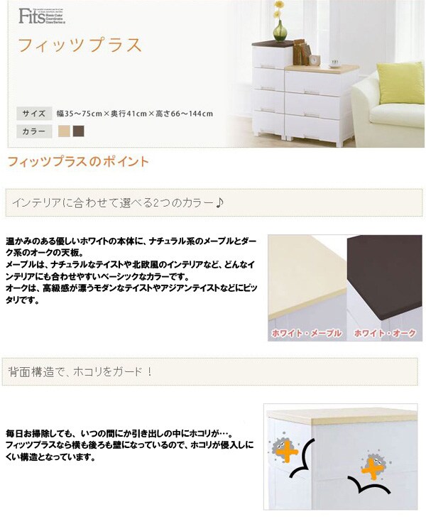 【チェスト フィッツプラス 3段 メープル 奥行約41×幅55×高さ66cm F5503の商品詳細】