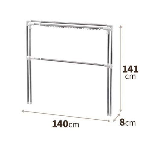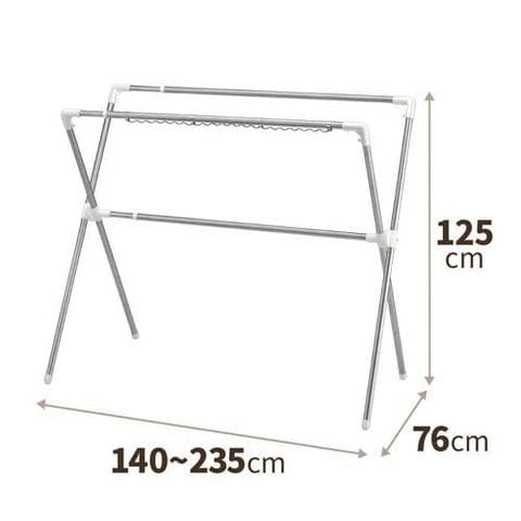| 使用時サイズ(約):幅140~235×奥行76×高さ125cm。収納時サイズ(約):幅140×奥行8×高さ141cm。干せる量の目安:布団約4枚。耐荷重:(全体)20kg。組立家具(お客様組立商品)。 (材質)本体:ステンレス巻きスチールパイプ。ハンガーフック:ステンレス。(樹脂部品)ポリプロピレン・ABS樹脂・ポリエチレン・(金属部品)スチール・ステンレス。 |