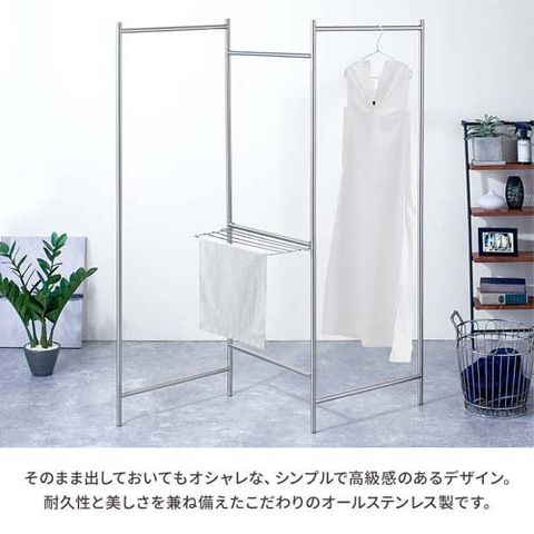 ●軽くて丈夫、オールステンレス仕様で、コートなどのロング丈、タオル、小物もしっかり干せるサイズです。