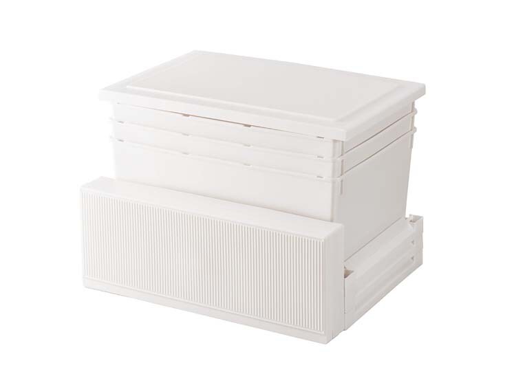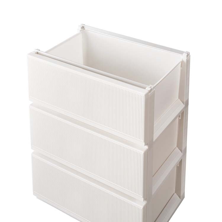 | 製品サイズ:(約) 幅65×奥行45×高さ85cm 材質:本体・引出・簡易キャスター(ポリプロピレン)、天板補強板(アルミ (前・後2本)) 引出内寸:(約)58×39.5×22.5cm (容量約54L) 収納目安:トレーナー×14枚 または セーター×10枚 耐荷重:天板5kg/引出し6kg |