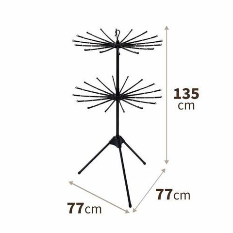 | 全体耐荷重(約):7kg。カラー:マットブラック。最大外寸(約):幅77×奥行77×高さ135cm。折りたたみサイズ(約):幅15×奥行13×高さ170cm。製品重量(約):1.33kg。 (材質)本体:スチールパイプ粉体塗装。樹脂部品:ポリプロピレン。樹脂部品:ポリエチレン。 |