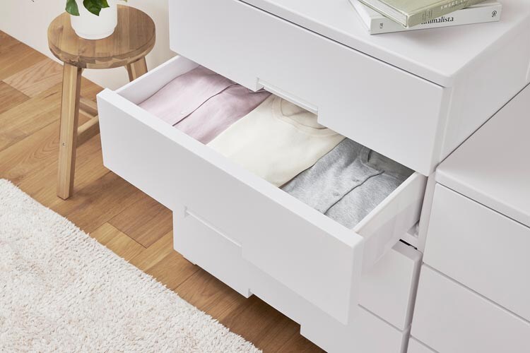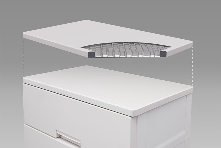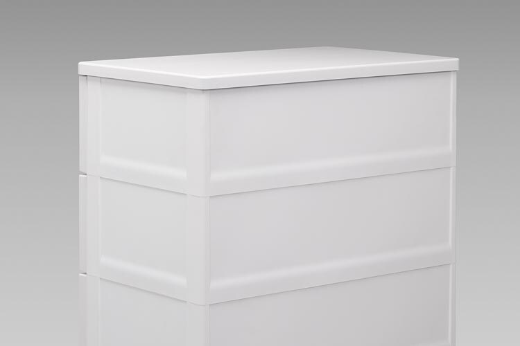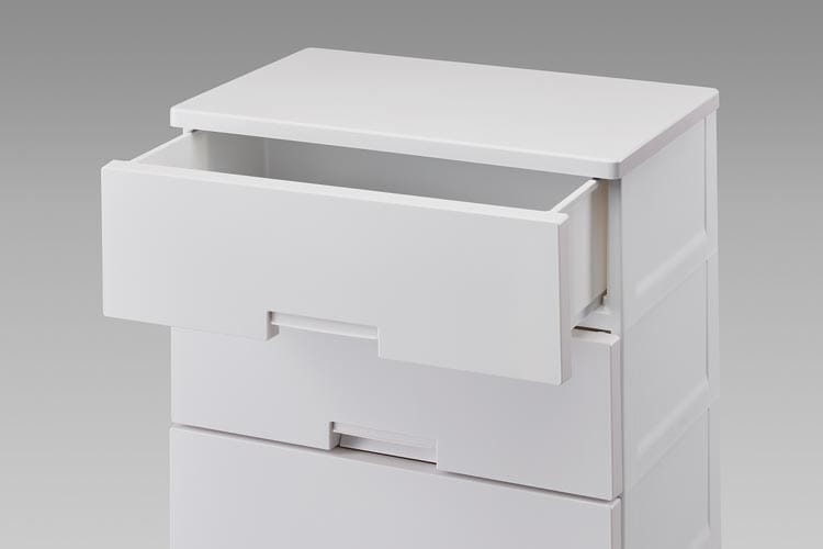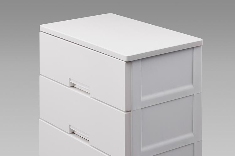 | 製品サイズ:(約) 幅65×奥行41×高さ85cm 材質:天板(プリント化粧、木質繊維板)、前パネル(スチロール樹脂)、引出・外枠(再生ポリプロピレン)、ロック・脚・ローラー(ポリプロピレン)、すべり止め(ポリエチレン) 引出内寸:(約)57×34.5×15cm (容量約29L) 収納目安:トレーナー×10枚 / セーター×6枚 耐荷重:天板10kg /引出し1段あたり5kg |