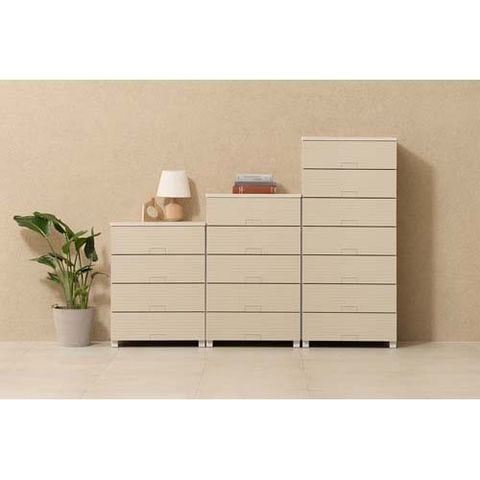| 製品サイズ:(約) 幅65×奥行41×高さ105cm 材質:天板(プリント化粧、木質繊維板)、前パネル(スチロール樹脂)、引出・外枠(再生ポリプロピレン)、ロック・脚・ローラー(ポリプロピレン)、すべり止め(ポリエチレン) 引出内寸:(約)57×34.5×15cm (容量約29L) 収納目安:トレーナー×10枚 / セーター×6枚 耐荷重:天板10kg /引出し1段あたり5kg |