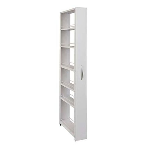 | サイズ:幅/約15.6cm、奥行/約57.7cm、高さ/約165.4cm 材質:本体・ガード/スチール(粉体塗装)、取っ手/ABS樹脂、ネジキャップ/ポリエチレン、キャスター/ポリウレタン 重量:約7.59kg 耐荷重:棚板1枚あたり/約8kg、全体/約50kg 仕様:お客様組立て品、要工具(プラスドライバー) |