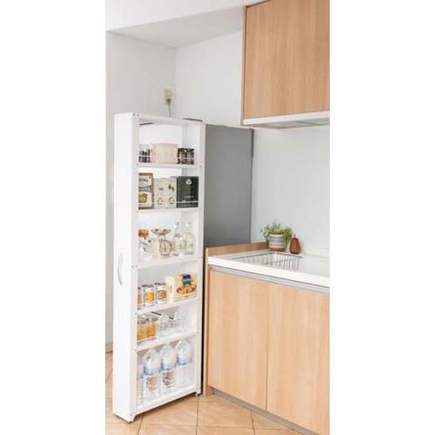 ●冷蔵庫横や洗面台横など省スペースに置ける隙間収納ラック。