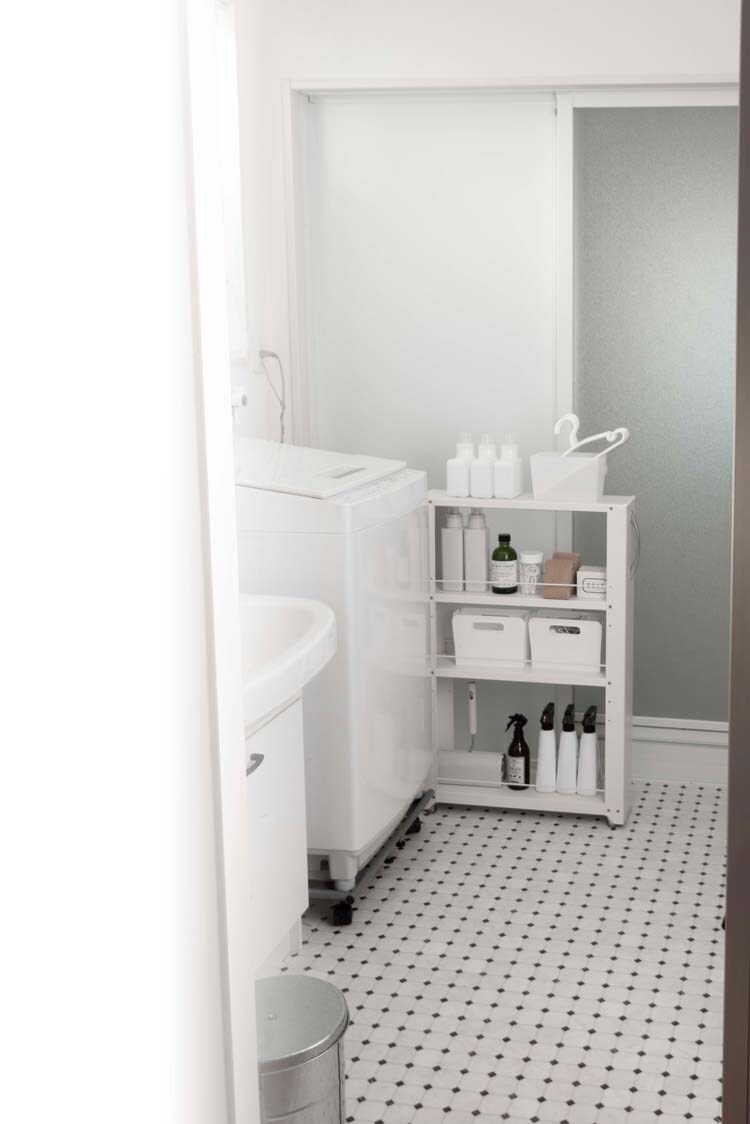 ●冷蔵庫横や洗面台横など省スペースに置ける隙間収納ラック。