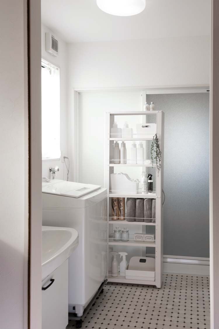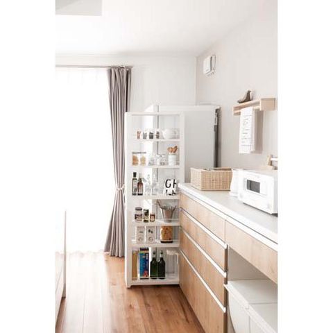 ●冷蔵庫横や洗面台横など省スペースに置ける隙間収納ラック。