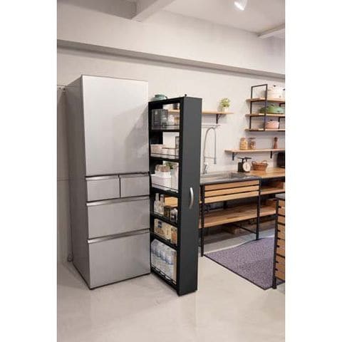 ●冷蔵庫横や洗面台横など省スペースに置ける隙間収納ラック。