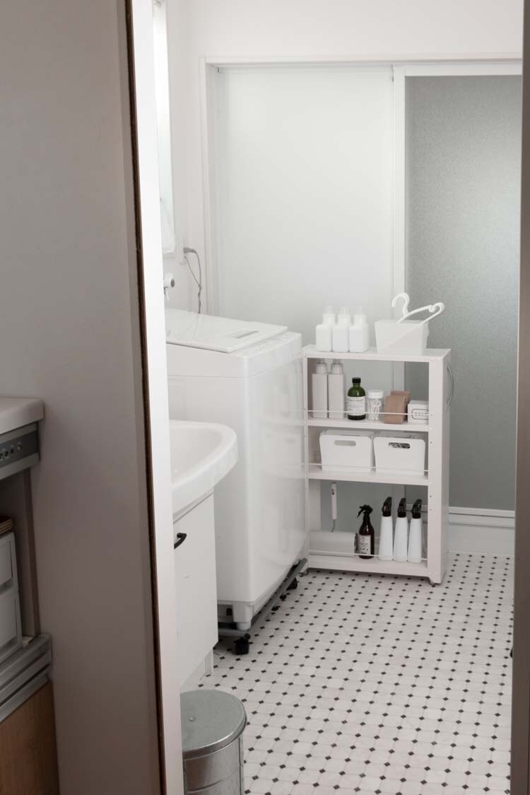 ●冷蔵庫横や洗面台横など省スペースに置ける隙間収納ラック。