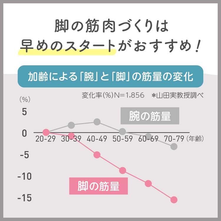 ●加齢の影響を受けやすい脚の筋肉量をチェックして、脚力低下に早めの対策を。