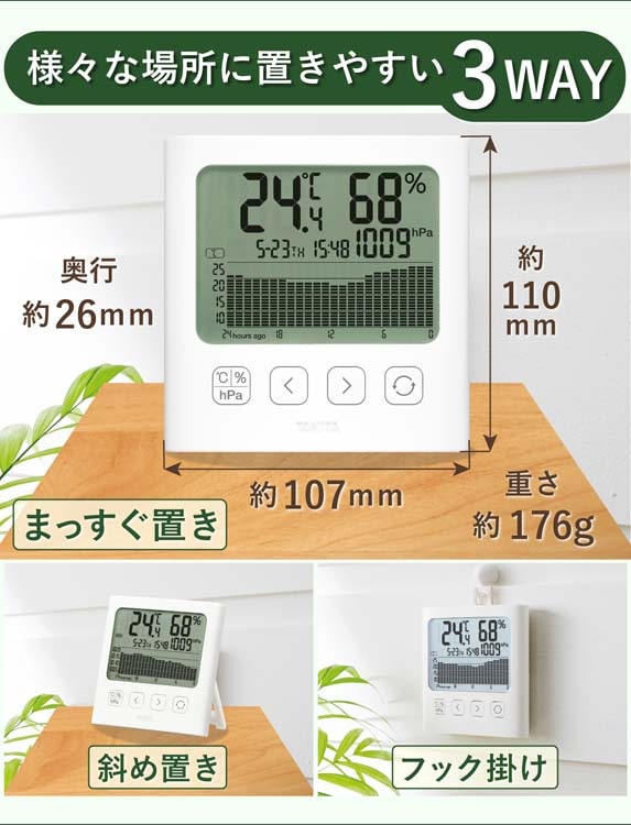 【タニタ グラフ付き デジタル温湿度計 TT-594-IVの商品詳細】