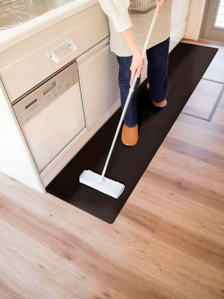 ●衝撃を吸収してくれる、拭けるキッチンマット。