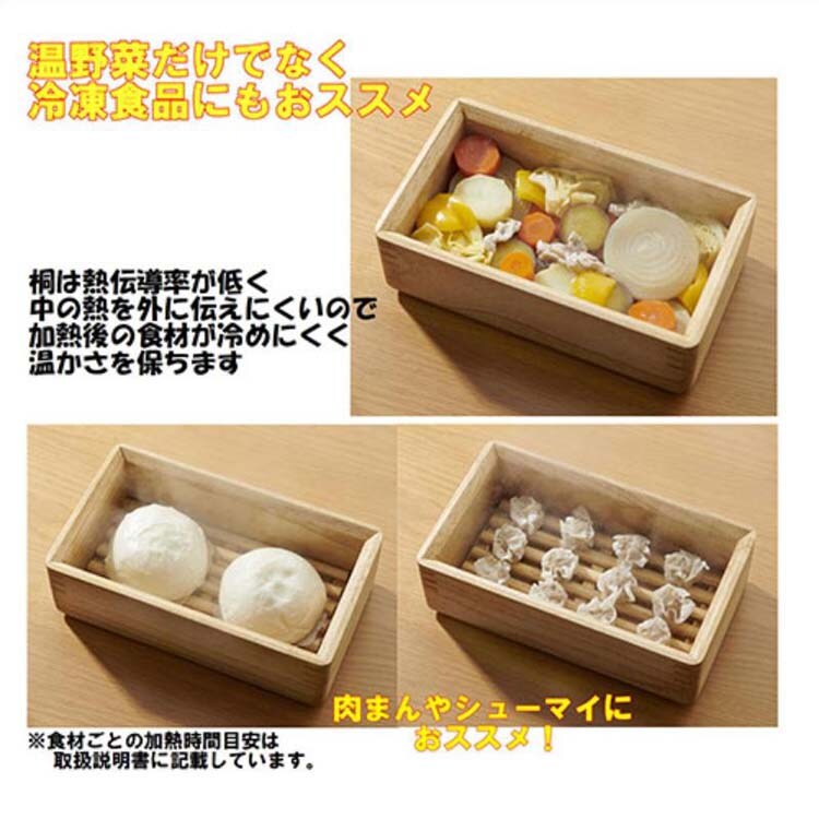 ●桐は熱伝導率が低く加熱直後でも熱くなり過ぎないのでそのまま持ち運べます。