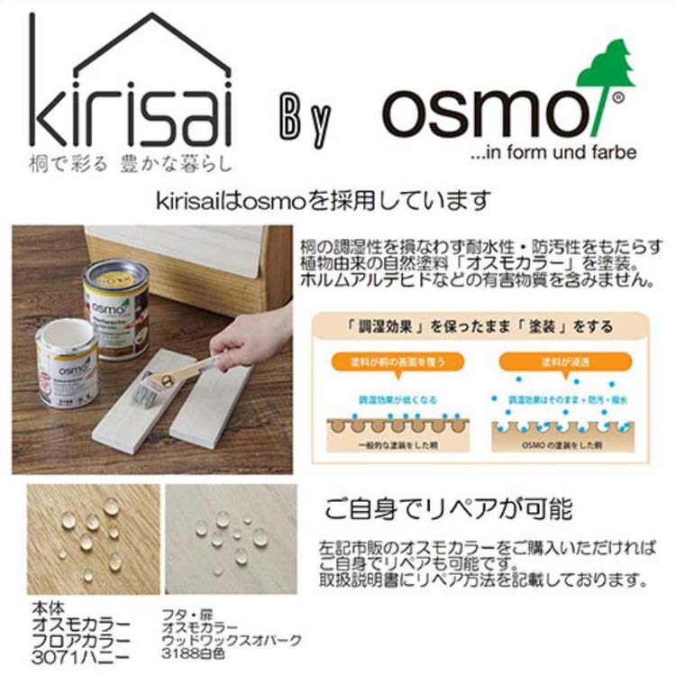 ●桐は湿気を吸収し、乾燥すれば放出してくれる調湿性が高い素材です。