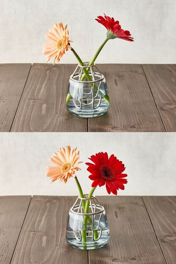 ●底面に花留めの凹みがあるので、少量のお花でも思い通りのスタイリング。