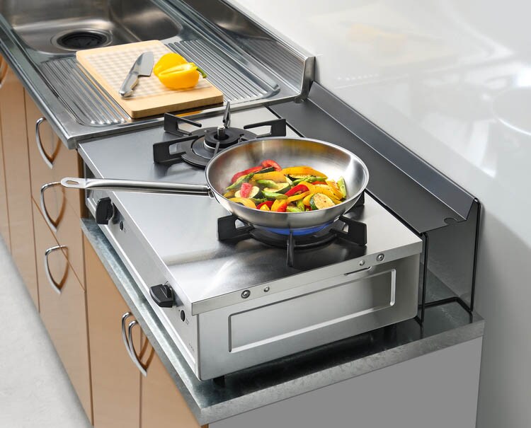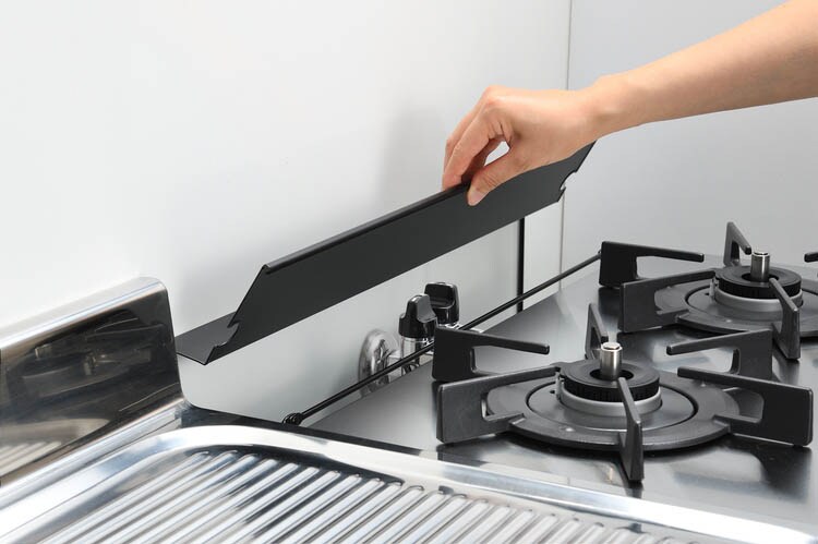 ●ガスコンロ奥のすき間に落ちてしまうクズや飛び散る油汚れをしっかりガード。