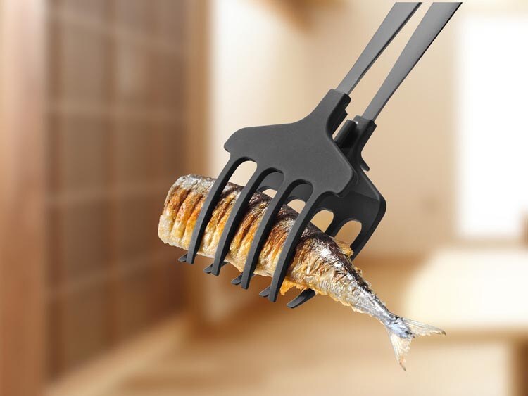●先端部はどんな大きさの魚にも沿う形。大きな魚もしっかり掴める焼魚専用トングです。