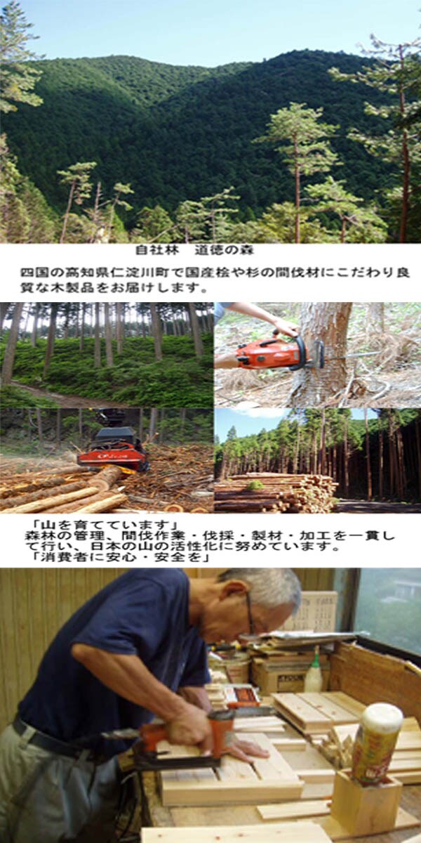 ●輸入材は一切使わず、自然豊かな高知県で育った良質の「ひのき間伐材」中心のこだわりぬいた材料を使用しています。
