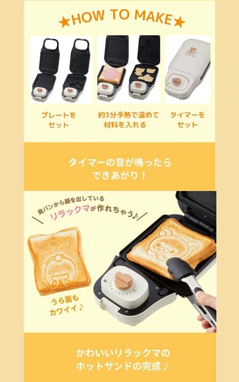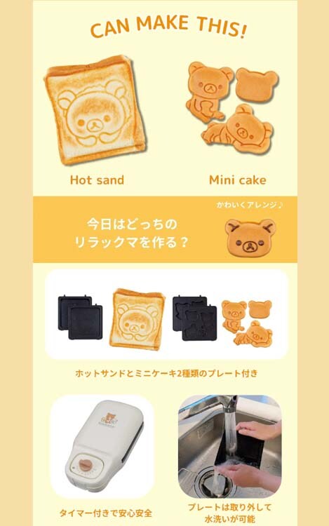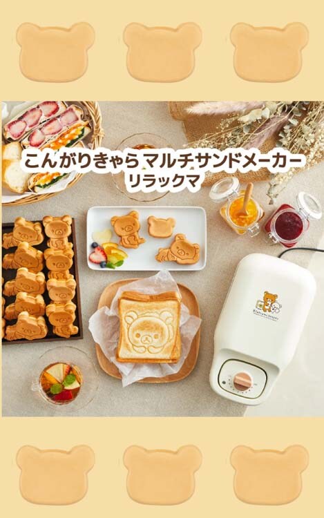 かわいいリラックマ柄のホットサンドを焼くことができます。リラックマがまるで食パンから顔を出しているようなデザインです。